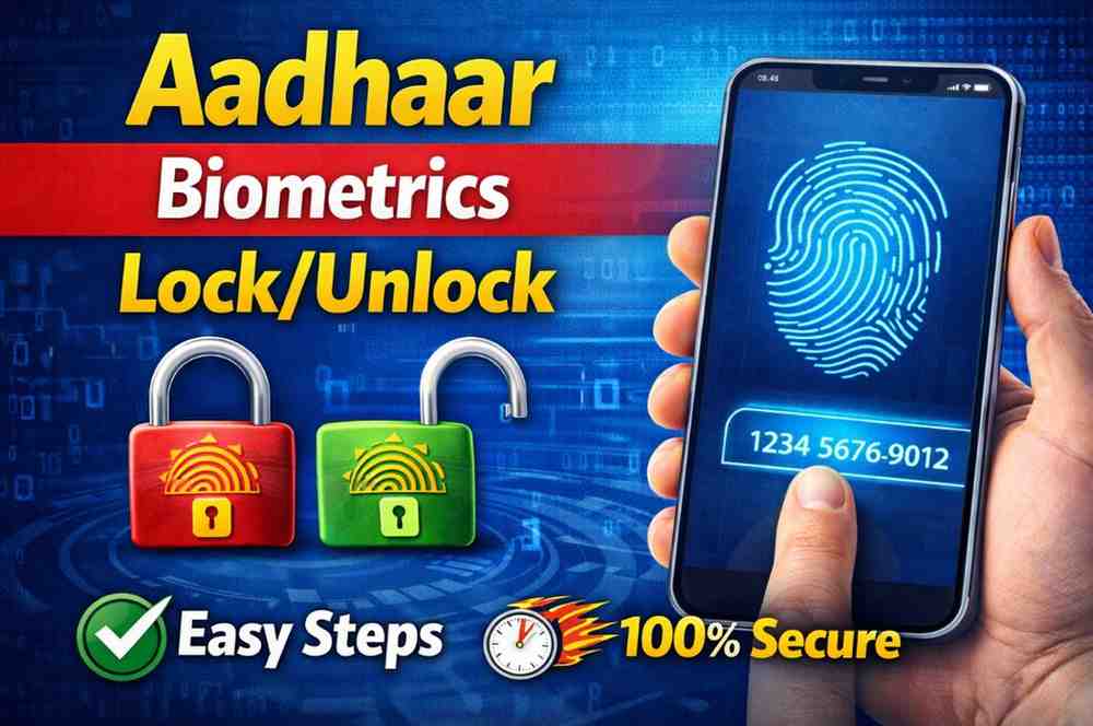 Biometric data stored in the Aadhaar database is used in many official services, such as opening a bank account, mobile SIM verification, or accessing government services that require identity confirmation. However, sometimes people want to make sure this biometric data cannot be used without their permission. That is when locking biometrics becomes useful. When biometrics are locked, biometric authentication (finger, iris, face scans) will not work even if someone scans them — increasing your security.
